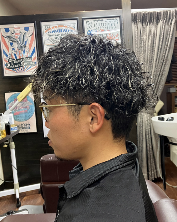 厚めのフェードでメリハリを効かせ、メッシュブリーチで抜け感と個性をプラス。濡れたような質感で、色気とこなれ感を演出します。